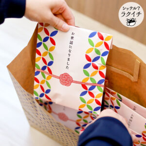 【シッテル?ラクイチ】119・「お世話になりました」お菓子あられ&お茶のセット、退職や異動の挨拶に!-をかし楽市-