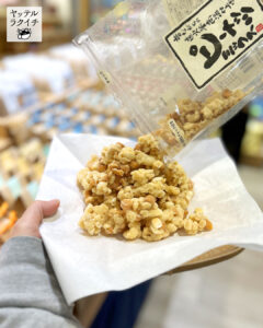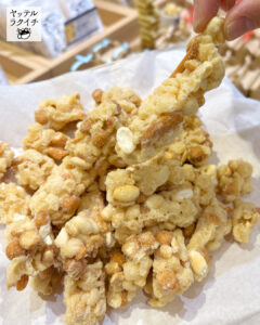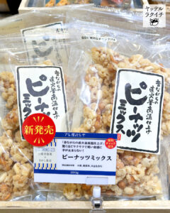 【ヤッテルラクイチ】15・ピーナッツミックス、100%岡山産白桃ジュース、おすすめ逸品ご紹介!-をかし楽市エキュート日暮里店-